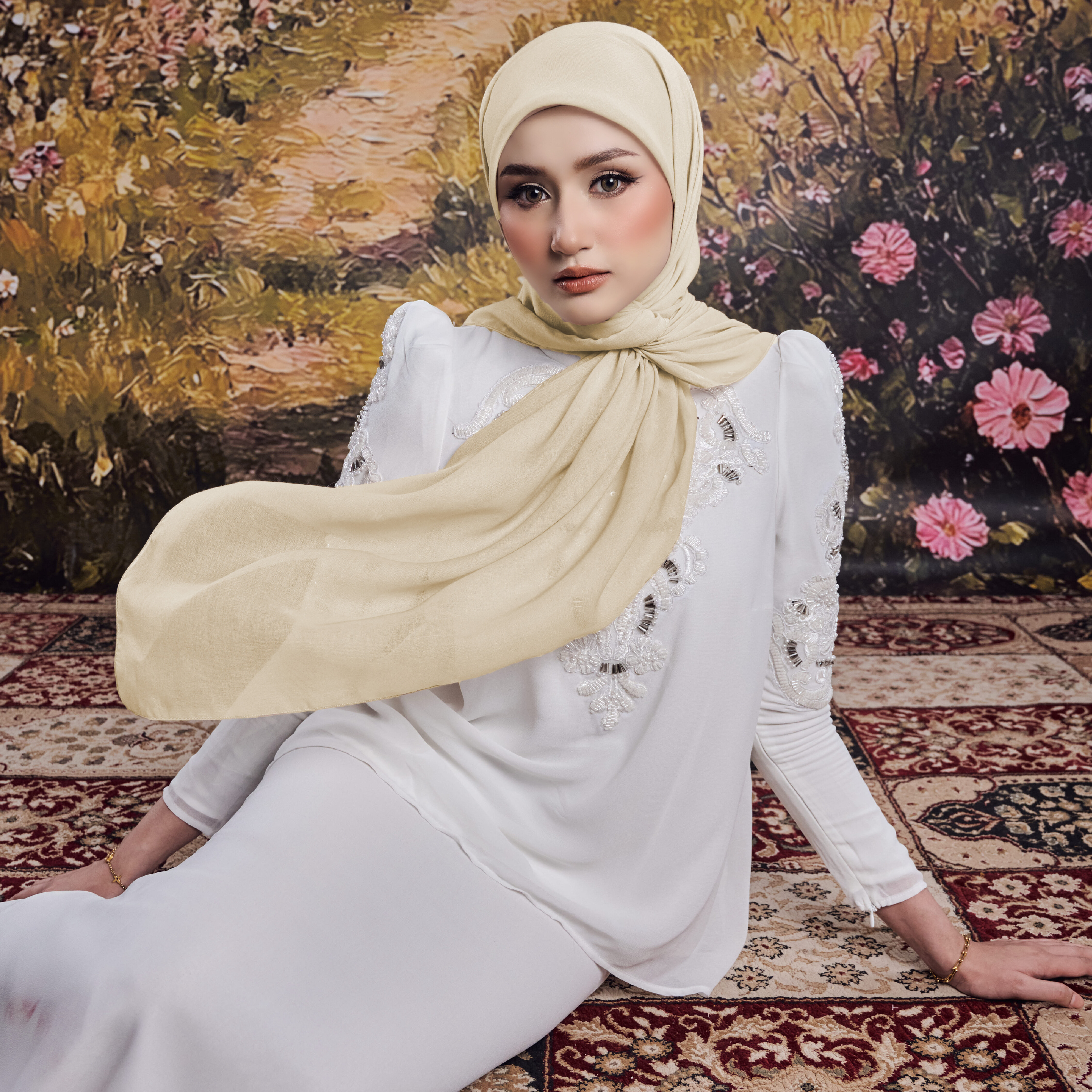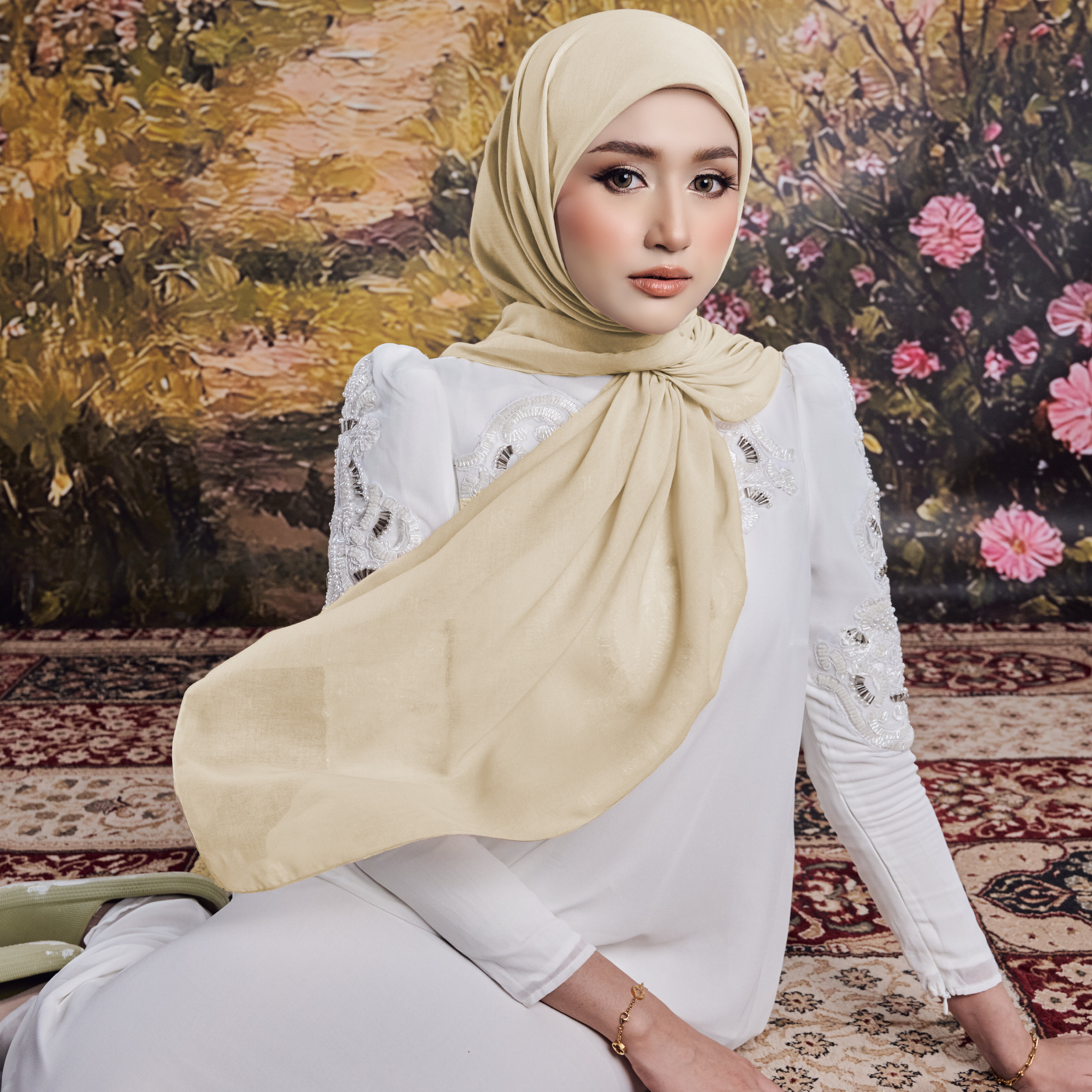 Home    /    Square Scarf    /    Her Tone in code Champagne